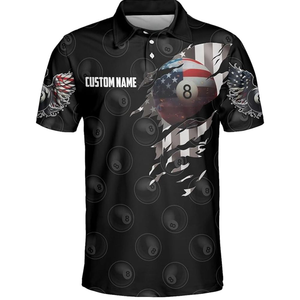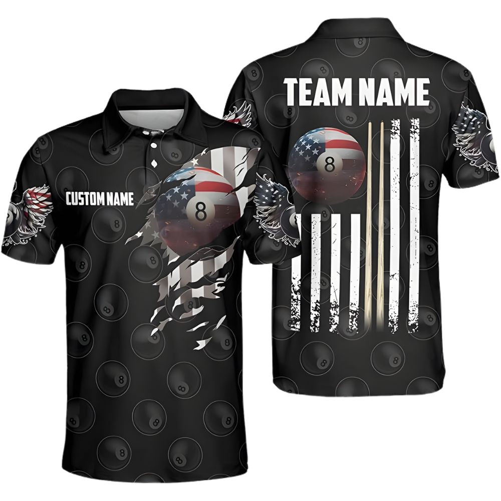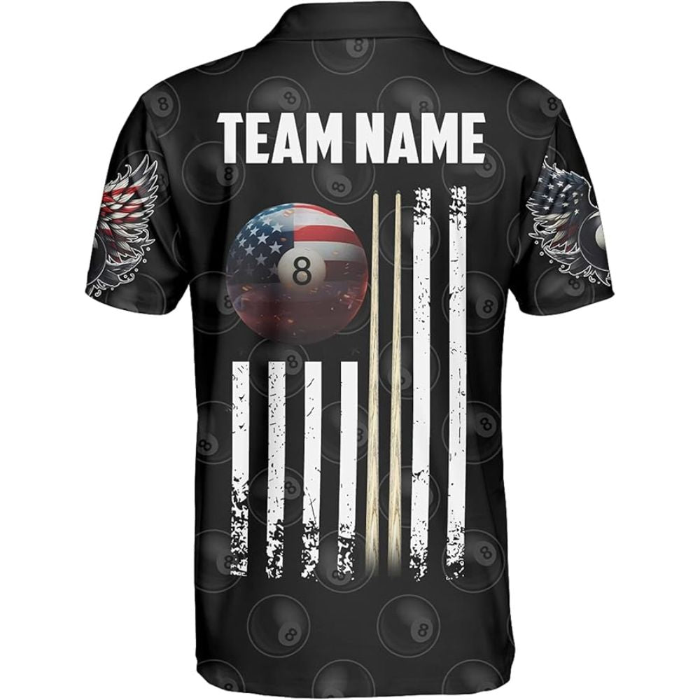 Custom American Flag 8 Ball Billiard Polo Shirt For Men, Custom Team Patriotic Pool Billiard Shirt BIZ0001