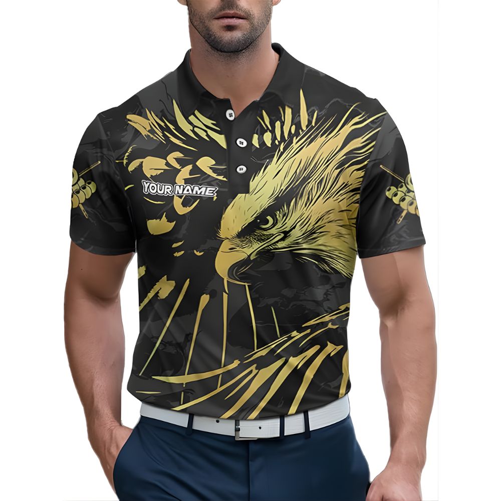 Custom Black And Gold Eagle 8 Ball Billiard Men Polo Team Shirt, Custom Eagle Pool Billiard Shirt BIZ0002
