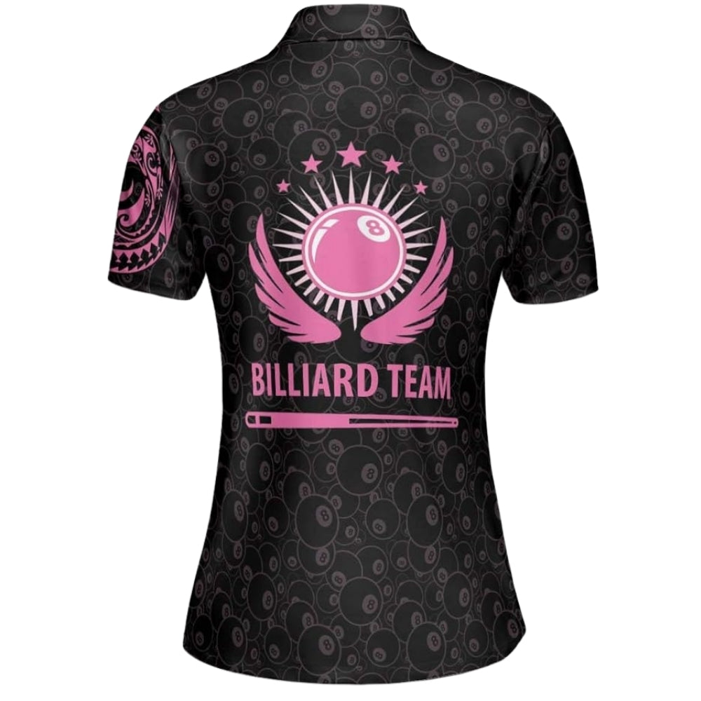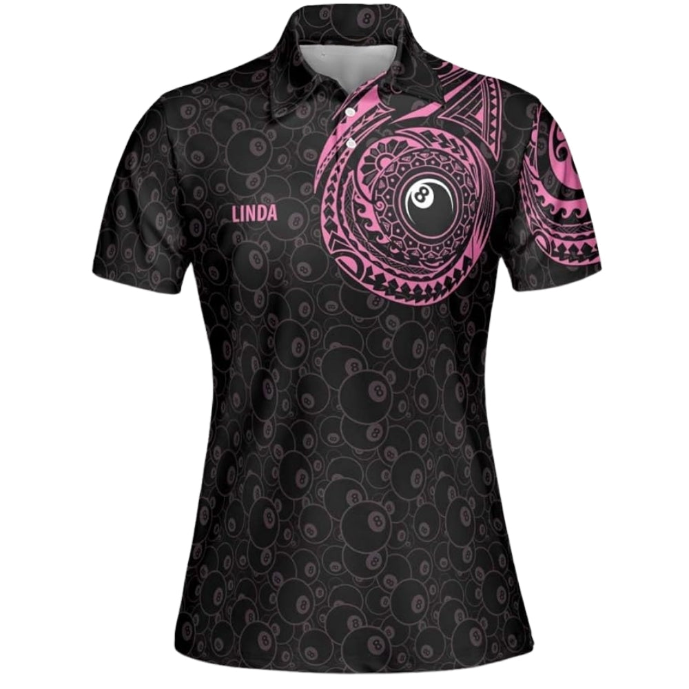 Custom Black And Pink Tribal Billiard Polo Shirt Women, Custom Tribal Billiard Team Shirt BIZ0026