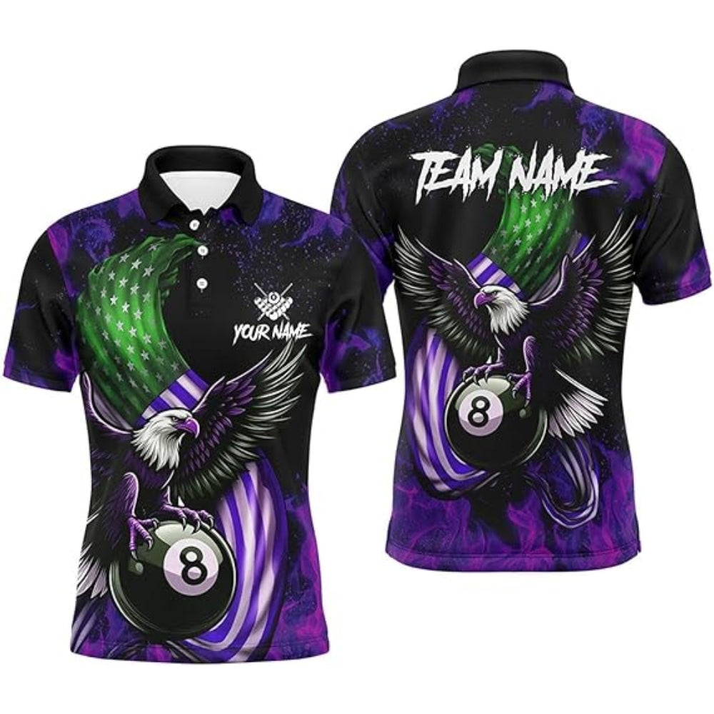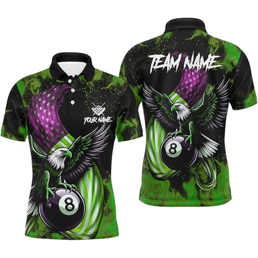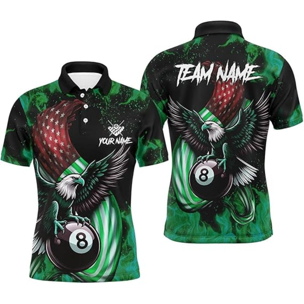 Custom Eagle American Flag Billiard Polo Shirt Men, Men's Custom Eagle Pool Billiard Team Shirt BIZ0013