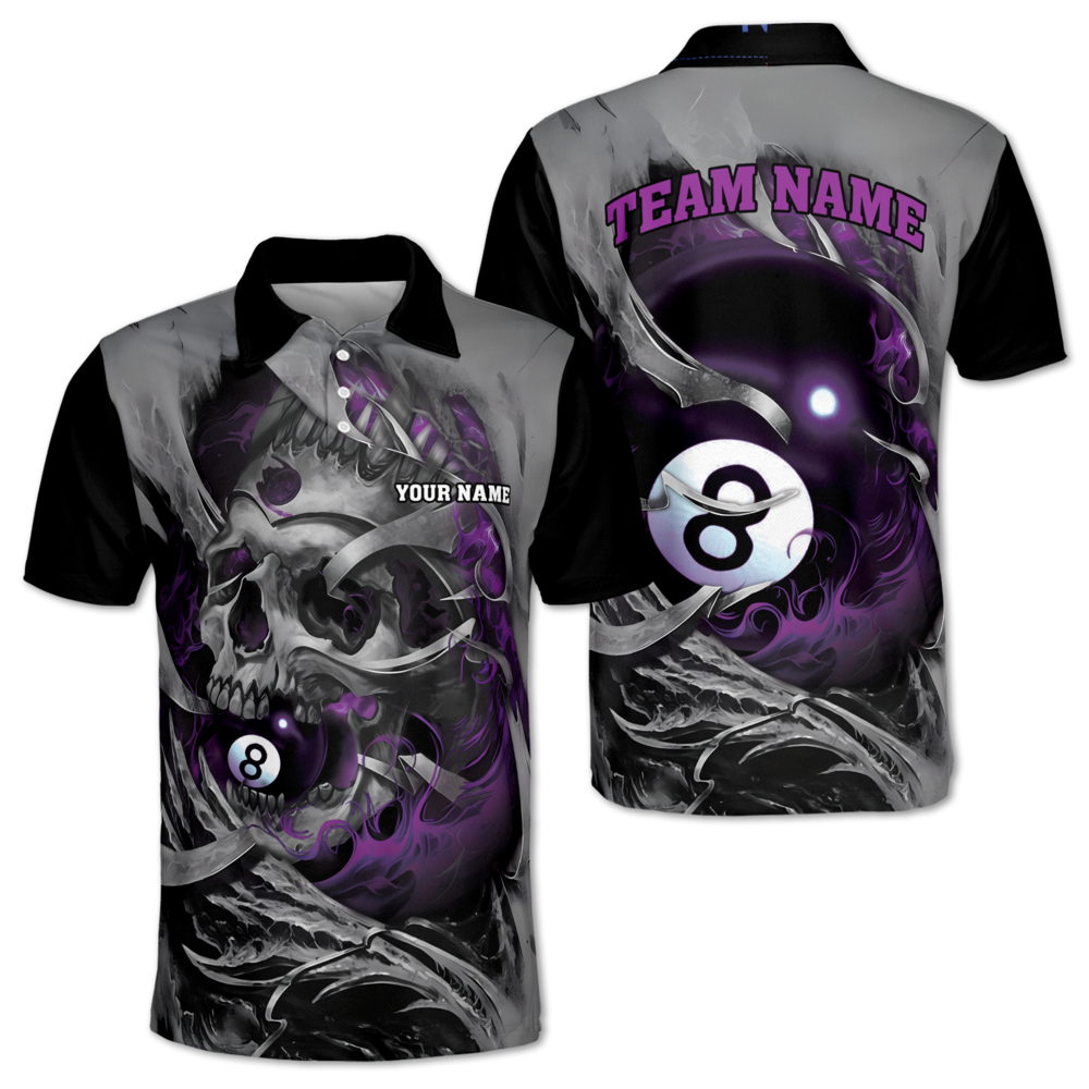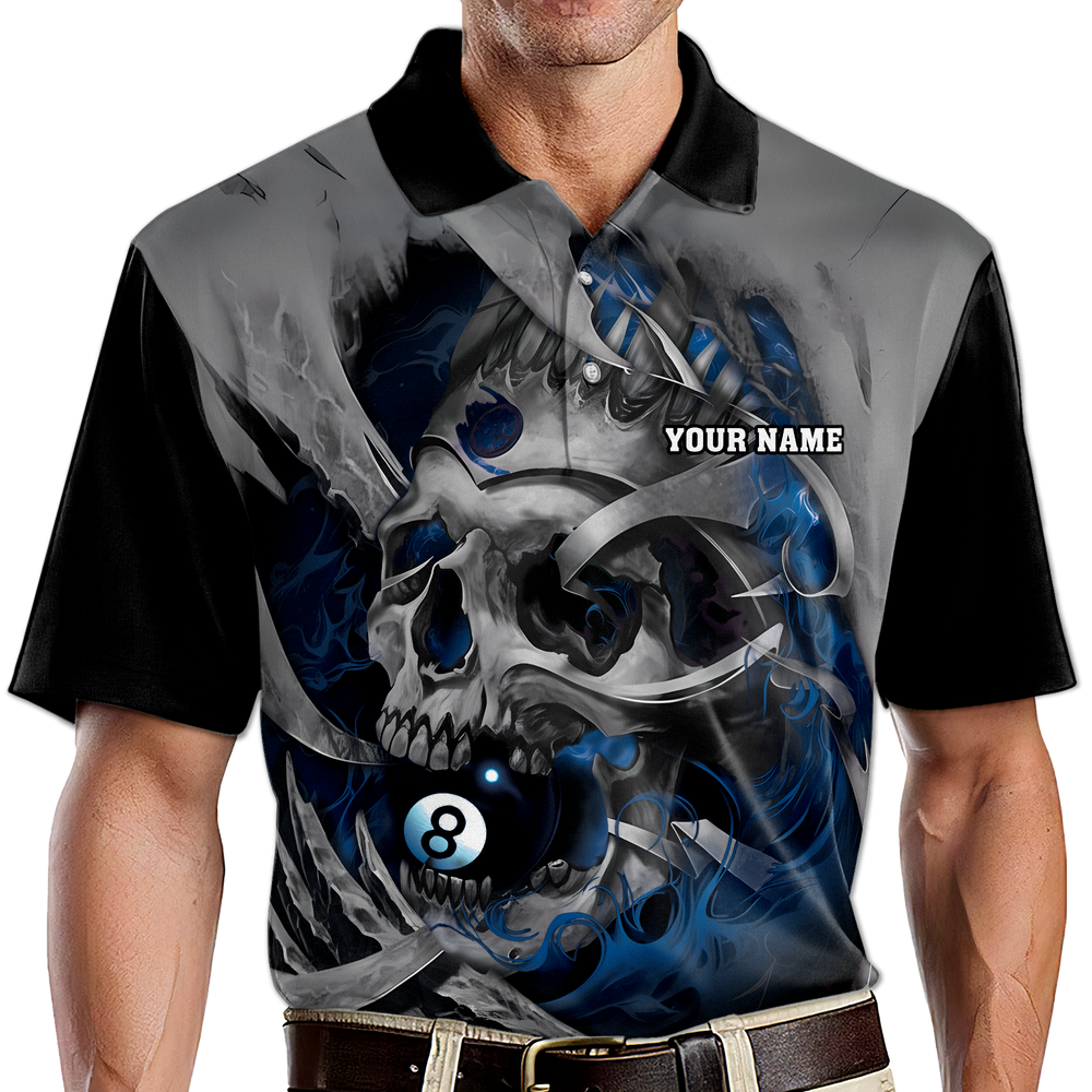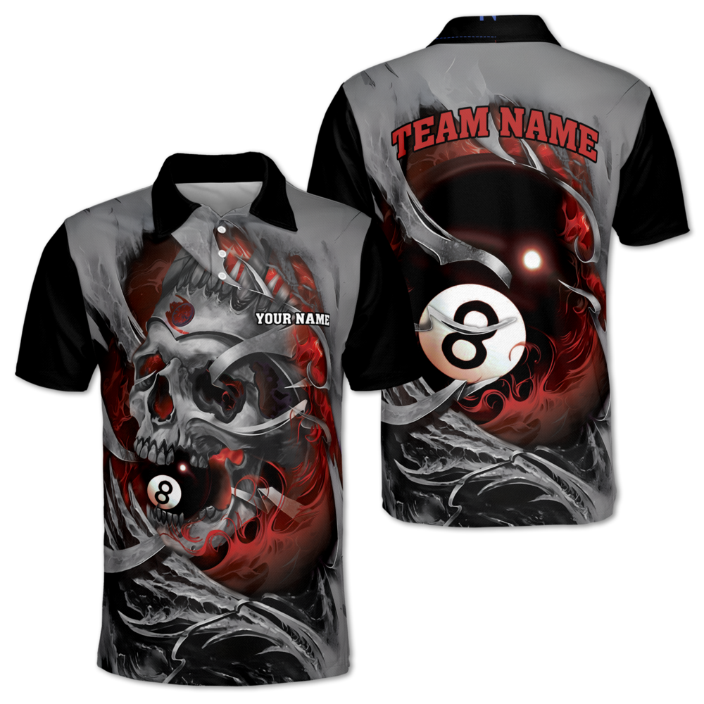 Custom Skull Billiard Polo Shirt For Men, Custom Flame Skull 8 Ball Billiards Team Shirts BI0043