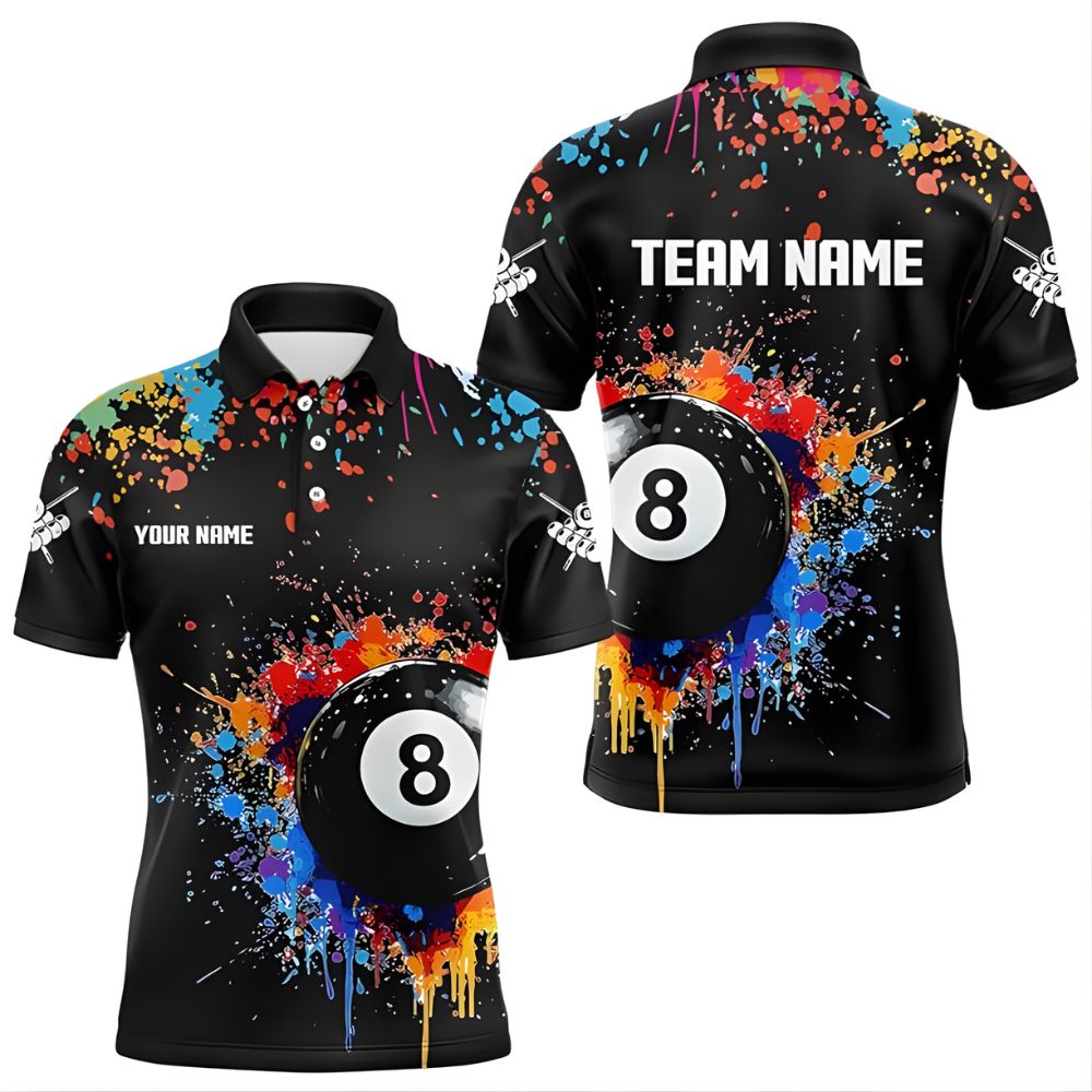 Custom Team Colorful 8 Ball Billiard Polo Shirt For Men, Custom Pool Billiard Team Shirt BIZ0003