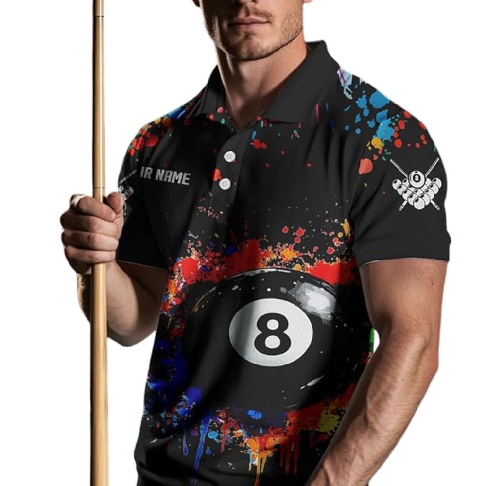 The colorful paint splash design symbolizes creativity, confidence, and the vibrant energy of competition. The 8-ball represents mastery, focus, and precision - the defining qualities of a true billiard player. This shirt isn’t just for playing pool - it’s a bold expression of your passion, individuality, and commitment to the game.